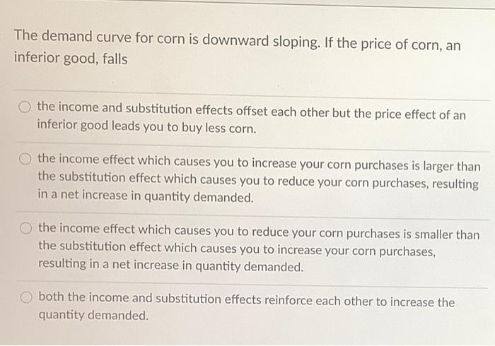 Solved The Demand Curve For Corn Is Downward Sloping If The Chegg Com